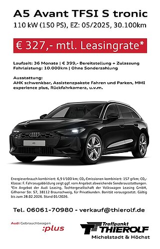 Gewerbekunden profitieren beim Leasing von steuerlichen Vorteilen und Planungssicherheit. Als Ihr Partner für Audi GW: plus in Michelstadt und Höchst bieten wir maßgeschneiderte Raten ohne Kapitalbindung. So bleibt ihr Unternehmen - ob im Odenwald, an der Bergstraße oder in und um Darmstadt ansässig - finanziell flexibel. Selbstverständlich bedienen wir auch Kunden deutschlandweit.