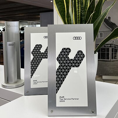 ¹ Die Auszeichnung Audi Top Service Partner 2026 wurde von der AUDI AG unter Ausschluss Dritter nach festgelegten Kriterien an ausgewählte Audi Partnerunternehmen vergeben. Hierzu zählen überdurchschnittliche Leistungen in der Kundenloyalisierung, ein digitales Format zur Terminvereinbarung sowie die zeitnahe Abarbeitung von Kundenanliegen. Mitarbeiter dieser Betriebe sind sowohl im technischen Bereich als auch in der Kundenbetreuung besonders ausgebildet und qualifiziert.