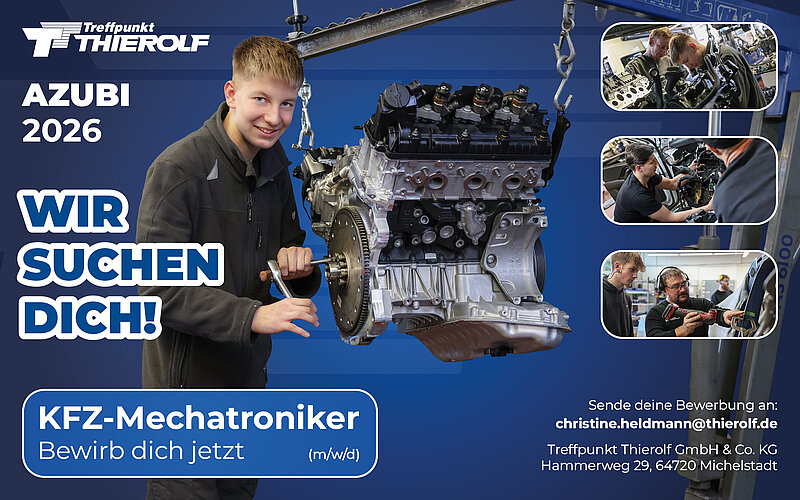 Ab August 2026 starten wir wieder mit der Ausbildung zum Kfz-Mechatroniker (m/w/d) bei Treffpunkt Thierolf in Michelstadt.